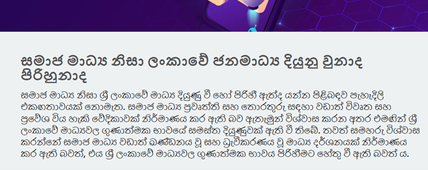 A: There is no clear consensus on whether Sri Lanka’s mass media further developed or declined as a result of social media. Some believe that social media has opened a wider space and accessibility platform for mass media-based news and info while others leading to the overall improvement of mass media quality. Some others believe that social media have led the local mass media to be more fragmented and polarization leading to lowering an overall loss in the quality of local mass media.